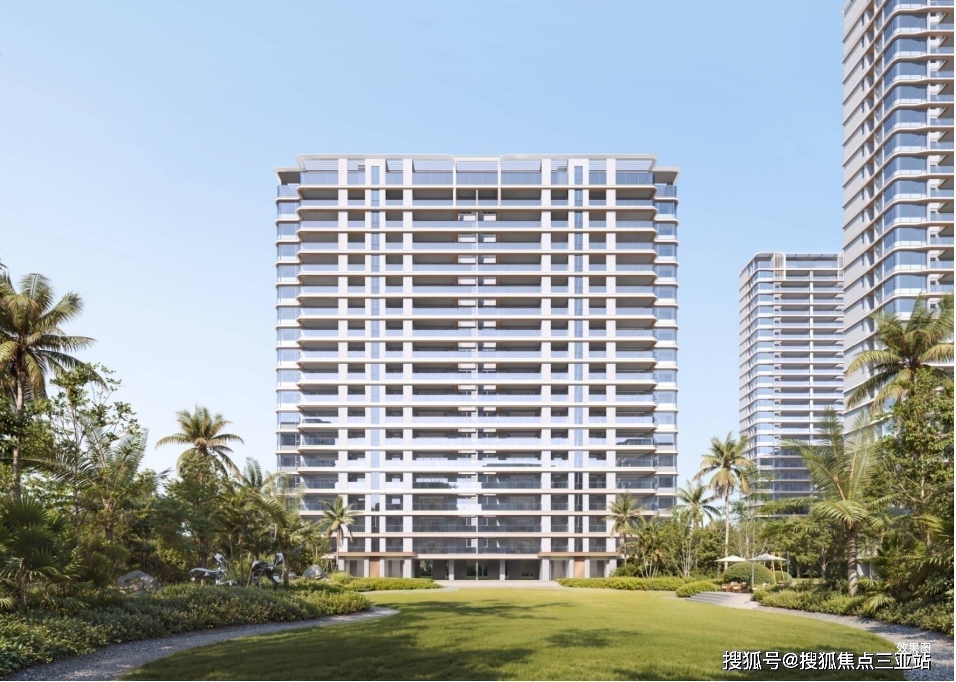 灵感汲取“椰风海韵”,以现代主义笔触革新建筑美学,将热带海岸的诗意风物,化作流淌于空间中的叙事语言。创新悬挑式观景阳台,勾勒轻盈通透轮廓。